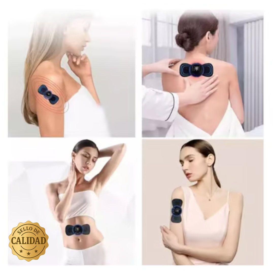 "Alívio del Dolor y Relajación en Cualquier Lugar! Leve Seu Mini Masajeador Portátil y Disfruta de Electrodos Extras para Pontenciar Los Resultados!"